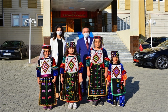 Vali Öner ve eşi Zehra Mine Öner, Damal Bebeği kıyafetli çocuklarla hatıra fotoğrafı da çektirdi.
