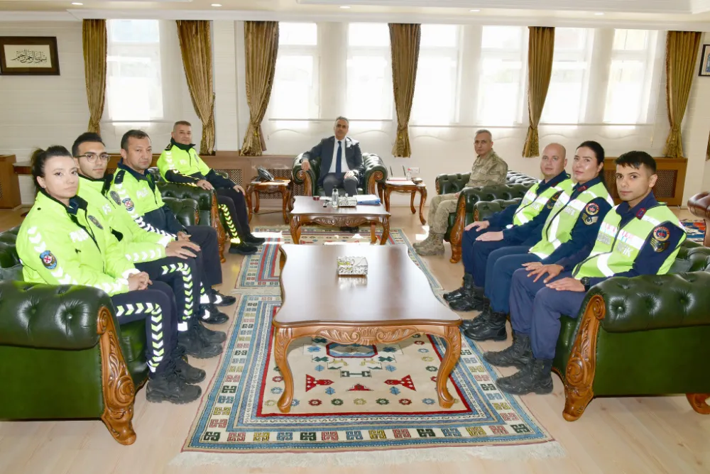 Vali Hayrettin Çiçek, 4-10 Mayıs tarihleri arasında kutlanan ‘Trafik Haftası’ kapsamında, İl Emniyet Müdürü Gökalp Şener, İl Jandarma Komutanı Albay Ramazan Yiğit, Emniyet ve Jandarma Trafik Şube görevlilerini makamında kabul etti.