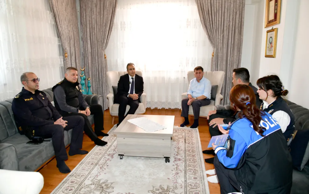 İl Emniyet Müdürü Gökalp Şener ile birlikte emniyet ekiplerinin hane ziyaretlerine eşlik eden Vali Çiçek, İpek ailesinin kapısını çalarak misafir oldu.
