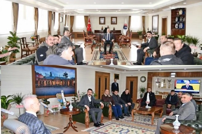 Bu kapsamda Damızlık Koyun ve Keçi Yetiştiricileri Birliği Başkanı Murat Gündüz ve yönetim kurulu üyeleri ile Şoförler Odası Başkanı Asım Özer ve yönetim kurulu üyeleri, Vali Çiçekli’yi ziyaret ederek sektörlerine ilişkin yürüttükleri faaliyetler hakkında bilgi paylaştı.