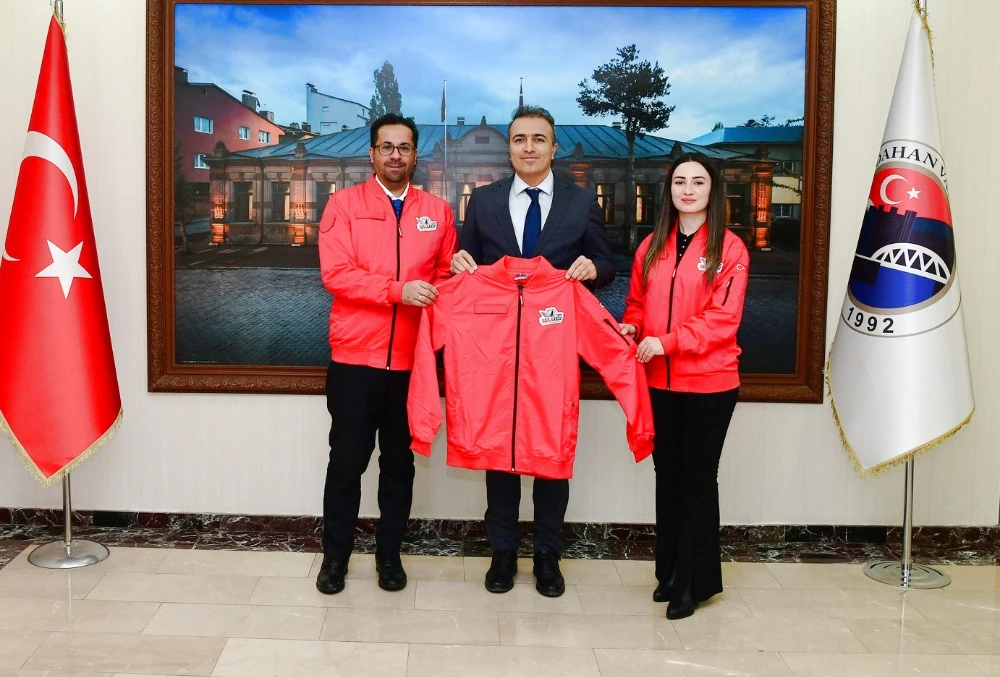 Ardahan Valisi Hayrettin Çiçek, Türkiye Teknoloji Takımı Vakfı (T3) Ardahan İl Sorumlusu Doç. Dr. Tayfun Yıldız ve DENEYAP İl Sorumlusu Işılay Deniz’i makamında kabul etti. Ziyaretin ardından, T3 İl Sorumlusu Tayfun Yıldız ve DENEYAP Sorumlusu Işılay Deniz, Vali Çiçek’e TEKNOFEST kıyafeti takdim etti.