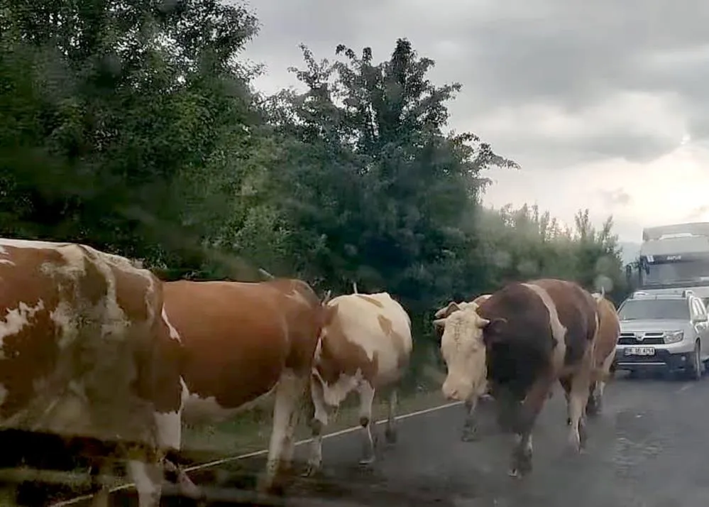 Ardahan'da otomobilin aniden yolan çıkan büyükbaş hayvan sürüsüne çarpması sonucu 2 kişi yaralandı, 2 büyükbaş hayvan telef oldu.