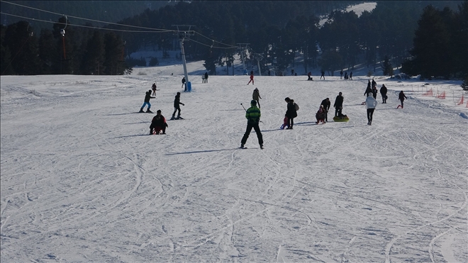 Kar kalınlığının 50 santimetrenin üzerine çıktığı kayak merkezinde yüzlerce ziyaretçi güneşli havanın da tadını çıkardı. Kayak merkezine gelen vatandaşlar, kızağa binip, snowboard ve kayak yaparak keyifli vakit geçirdi.