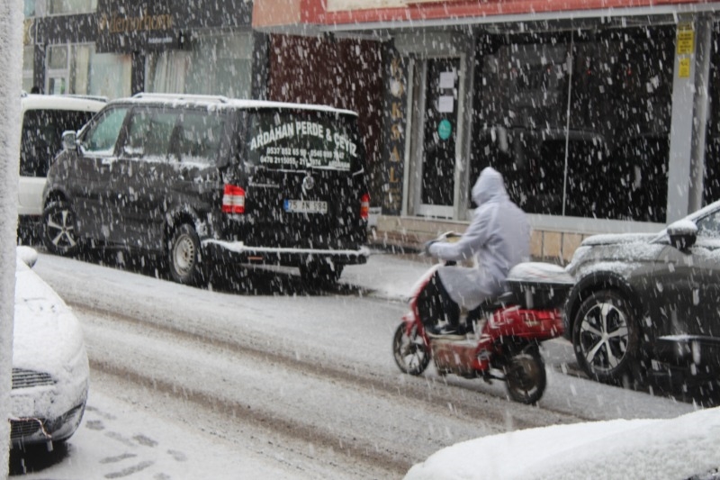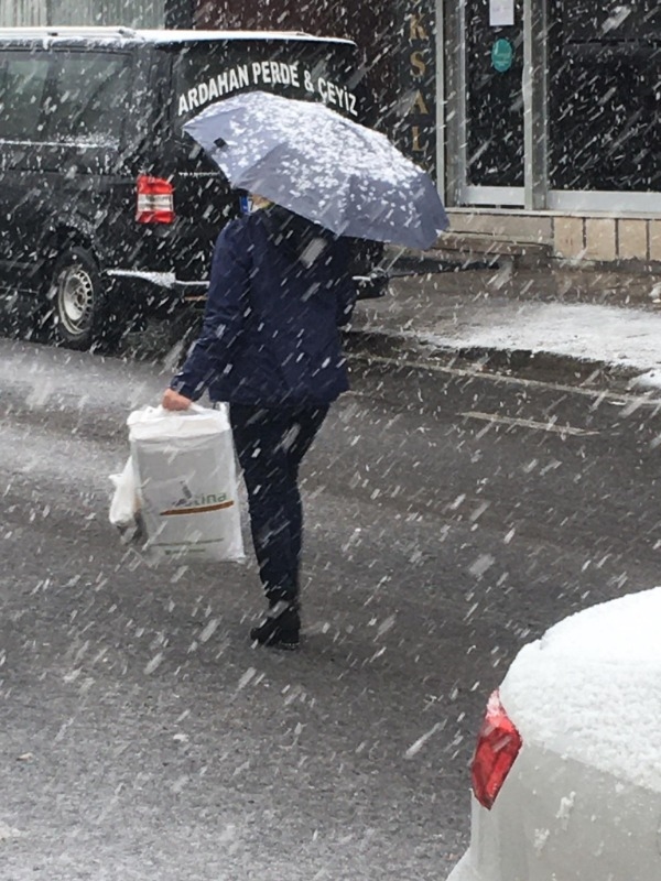 Ardahan’da mevsim normallerinin altına düşen hava sıcaklığı ile akşamüzeri etkili olan yağmur, öğlen saatlerinde yerini kar yağışına bıraktı. Kısa sürede etkisini artıran kar, araçların üzerinde tabaka oluşturdu. Kışı aratmayan görüntüler çıkarken, vatandaşlar da şemsiyelerini açtı.