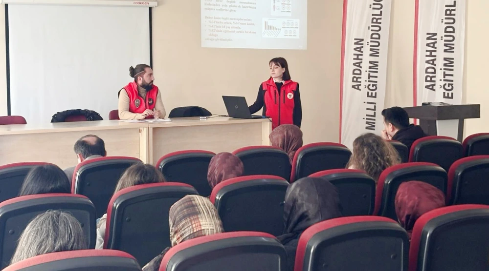 Ardahan Terörle Mücadele Şube Müdürlüğü, “Gençlik Sizin Eseriniz” projesi kapsamında, Ardahan İl Milli Eğitim Müdürlüğü koordinasyonunda yeni ataması yapılan 121 öğretmene kapsamlı bir bilgilendirme ve farkındalık eğitimi düzenledi.