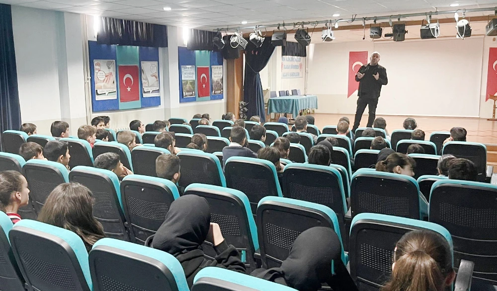 Salim Dursunoğlu Anadolu İmam Hatip Lisesi öğrencilerinin katıldığı eğitimde; teknolojinin bilinçli ve dengeli kullanımı, bağımlılığın birey üzerindeki olumsuz etkileri ve sağlıklı yaşam alışkanlıkları hakkında kapsamlı bilgiler paylaşıldı.