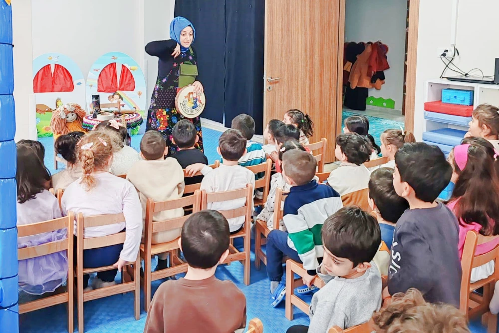 Erken çocukluk döneminin önemine dikkat çeken Sarıoğlu, etkinliğin ilk bölümünde minik öğrencilerle buluşarak “Sevimli Kukla Telve” eşliğinde eğlenceli ve öğretici anlar yaşattı. Çocukların ilgiyle takip ettiği interaktif oyunların ardından, “Kınalı Güvercin” hikâyesi anlatıldı. Hikâyede, kınalı güvercinin arkadaşlarıyla iş birliği yaparak zor bir görevi başarması, yardımlaşma ve dayanışma duygusunu eğlenceli bir anlatımla çocuklara aktardı.