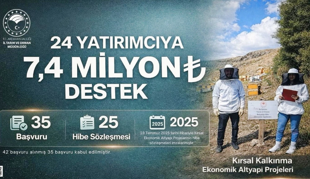 Ardahan İl Tarım ve Orman Müdürlüğü, kırsal kalkınmayı desteklemek ve tarıma dayalı ekonomik faaliyetleri güçlendirmek amacıyla yürütülen Kırsal Ekonomik Altyapı Projeleri kapsamında önemli bir destek sağladı. Yapılan açıklamaya göre, Ardahan genelinde başvurusu alınan projelerden 21 yatırımcı, toplam 7,4 milyon TL hibe desteğinden yararlandı.