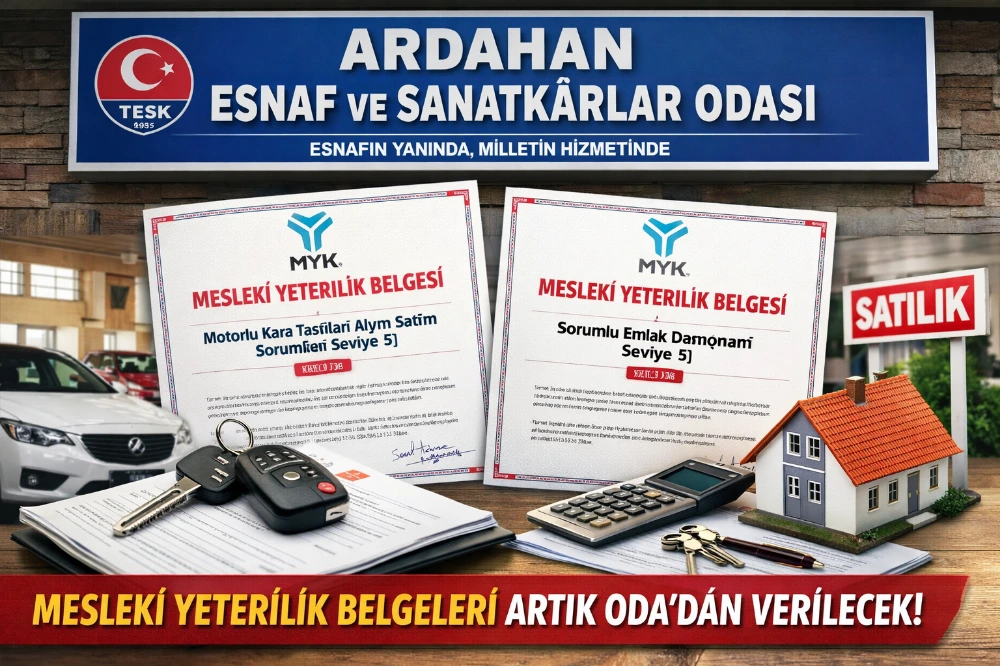 Ardahan Esnaf ve Sanatkârlar Odası, üyelerinin uzun yıllardır il dışına giderek temin ettiği mesleki yeterlilik belgelerinin artık Ardahan’da düzenleneceğini duyurdu. Türkiye Esnaf ve Sanatkârları Konfederasyonu (TESK) ile yapılan protokol kapsamında iki önemli meslek dalında belge işlemleri resmen başlatıldı.