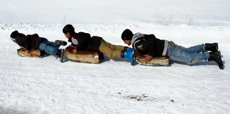Mahalle aralarında toplanan çocukların bazıları kızakla kayarken, bazıları ise tepsi ve poşetleri kızak yerine kullanarak karlı yollarda doyasıya eğlendi. Soğuk havaya aldırış etmeyen çocuklar, arkadaşlarıyla birlikte karın keyfini çıkararak tatili fırsata çevirdi.