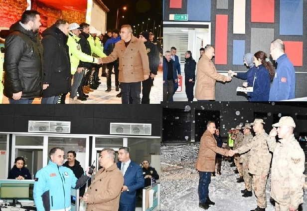 Ardahan Valisi Hayrettin Çiçek, yeni yıl öncesinde kent genelinde görev yapan güvenlik ve sağlık personelini ziyaret ederek yürütülen çalışmaları yerinde inceledi.
